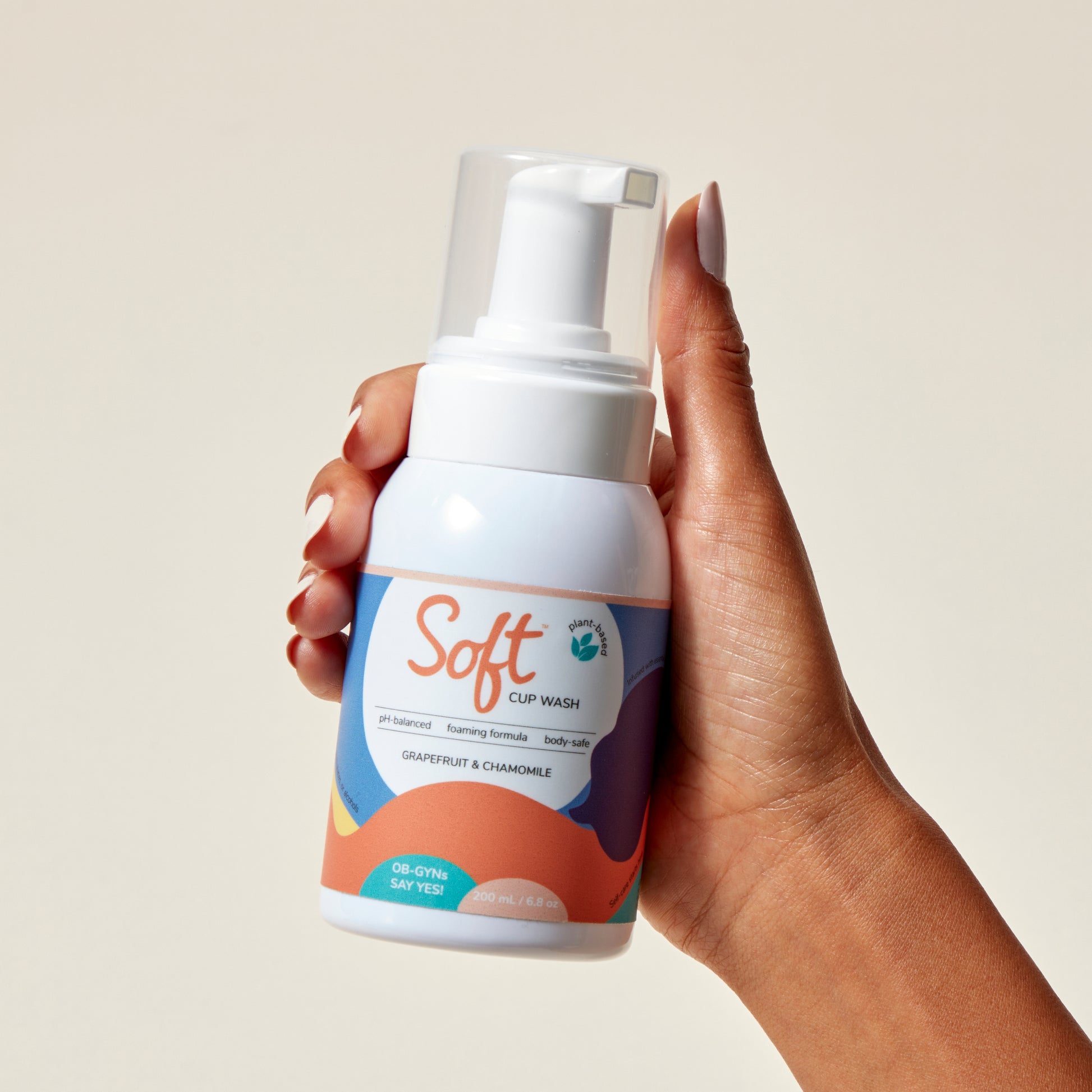 Soft Cup Wash was formulated to gently clean both silicone menstrual cups, menstrual discs, and your entire body.